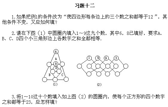 四年級奧數(shù)上冊:第十二講 數(shù)陣圖習(xí)題