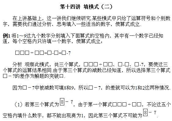 四年級奧數上冊:第十四講 填橫式(二)